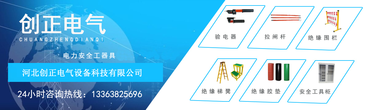 河北創(chuàng)正電氣設(shè)備科技有限公司主要經(jīng)營(yíng)產(chǎn)品包括:高壓驗(yàn)電器、高壓接地線(xiàn)高壓拉閘桿、絕緣橡膠墊絕緣伸縮圍欄、絕緣梯、安全工具柜、絕緣凳、擋鼠板、安全警示帶、絕緣臺(tái)、安全帶、腳扣、安全帽、標(biāo)識(shí)牌、絕緣手套、絕緣靴等電力安全工器具。公司以“服務(wù)電力系統(tǒng),努力永無(wú)止境”為目標(biāo),以“人才就是生產(chǎn)力”為戰(zhàn)略,以經(jīng)驗(yàn)為依托,以理念為指導(dǎo),以員工為基礎(chǔ),以市場(chǎng)為支撐,貫徹“以顧客需求為上”的經(jīng)營(yíng)理念,以合格的質(zhì)量,合理的價(jià)位,適應(yīng)市場(chǎng)的需求。 [詳細(xì)介紹]