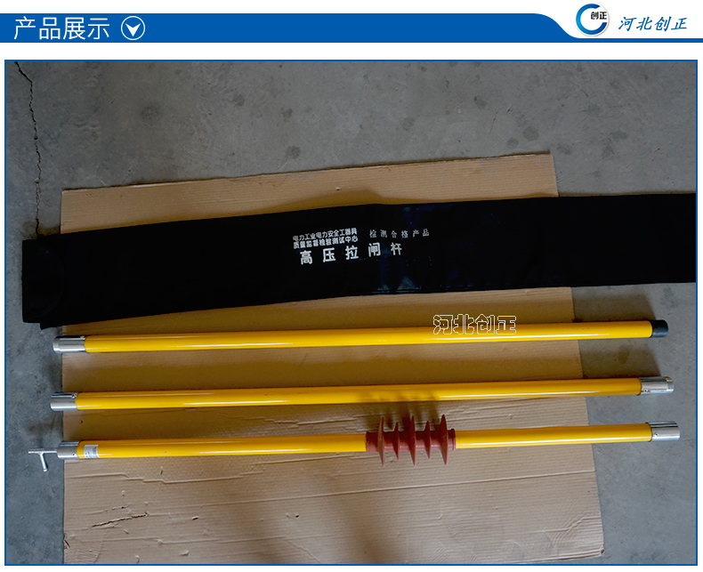 1、絕緣桿:采用絕緣性能及機械強度強、重量輕、經(jīng)防潮處理的環(huán)氧樹脂管制成。