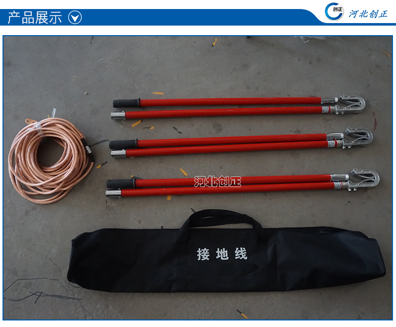 (4)接地軟銅線(xiàn)有分相式和合相式,接地棒有圓口式和雙簧式。
