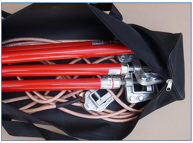 (3)制作工藝: 導(dǎo)線夾、接地夾采用鋁合金或紫銅壓鑄成形;操作棒是玻璃鋼環(huán)氧樹(shù)脂管;接地軟銅線采用多股軟銅線絞合而成,外覆透明絕緣護(hù)層。