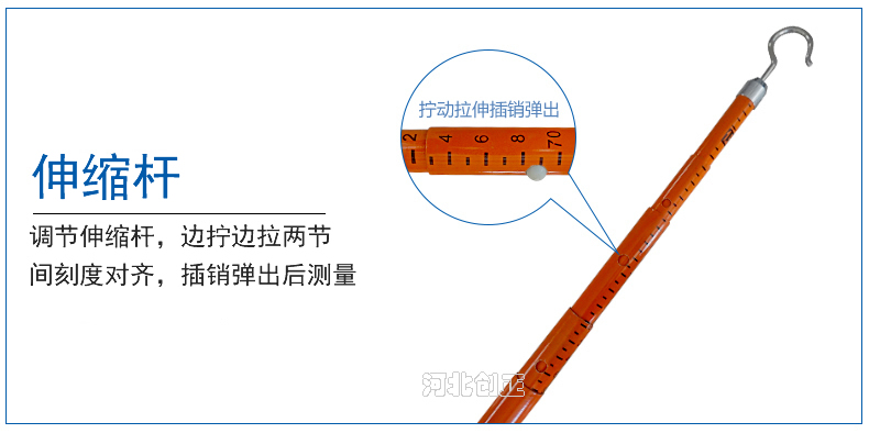 絕緣測(cè)高桿用于測(cè)量導(dǎo)線(xiàn)離地面的尺寸,線(xiàn)路的交叉跨越間距。