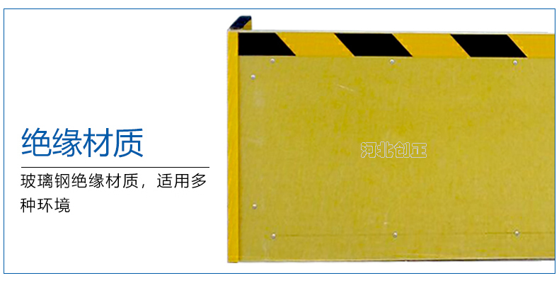 玻璃鋼絕緣擋鼠板采用玻璃鋼板材制做。擋鼠板上部貼黃黑相間反光條,反光條為反光膜加背膠紙制作。