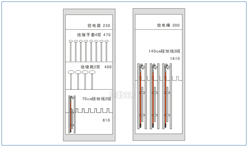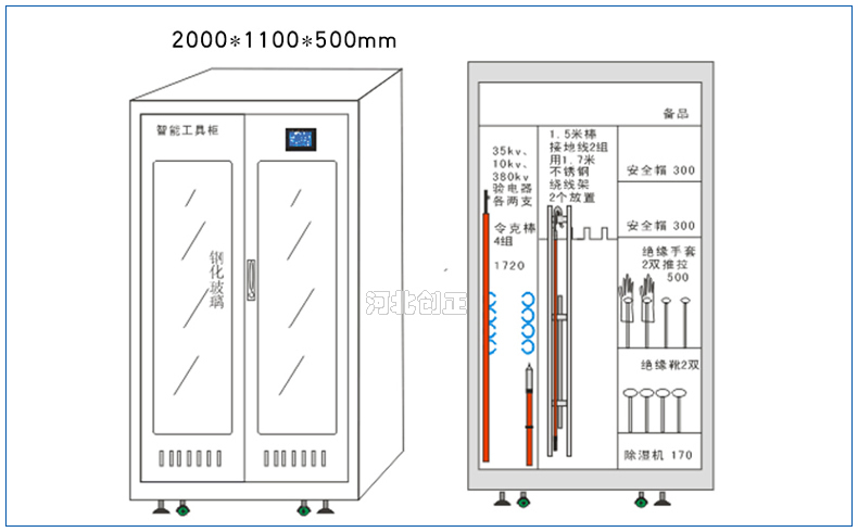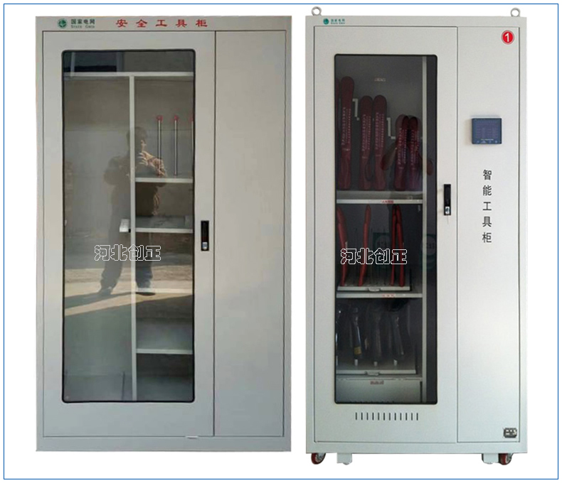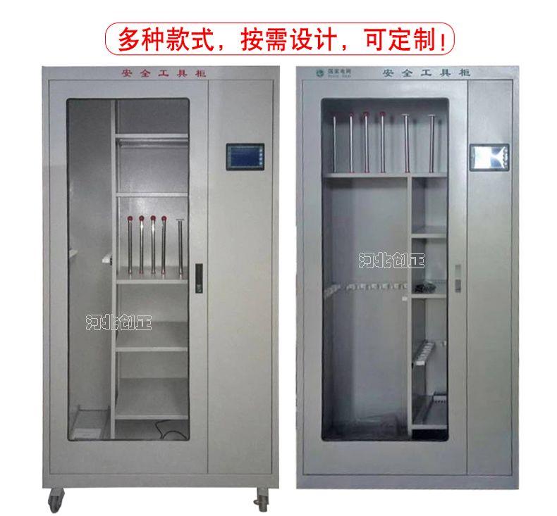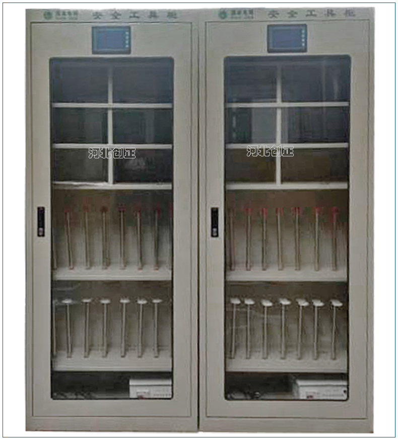 2、智能型安全工具柜裝有溫濕度顯示表和控制操作面板,顯示溫濕度和設(shè)備運(yùn)行狀態(tài)。柜底可選擇安裝萬向輪和定位螺桿;柜頂可選擇安裝吊杯,方便運(yùn)輸。應(yīng)用于不同溫濕度地區(qū)的不同電壓等級(jí)的變電站、集控站、線路工區(qū)以及電力公司等單位。