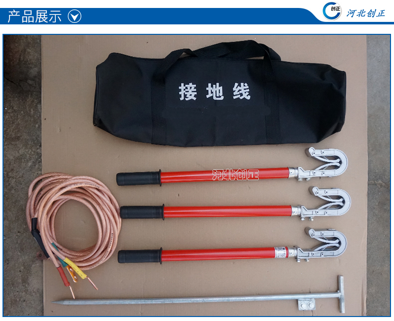 (4)接地軟銅線有分相式和合相式,接地棒有圓口式和雙簧式。