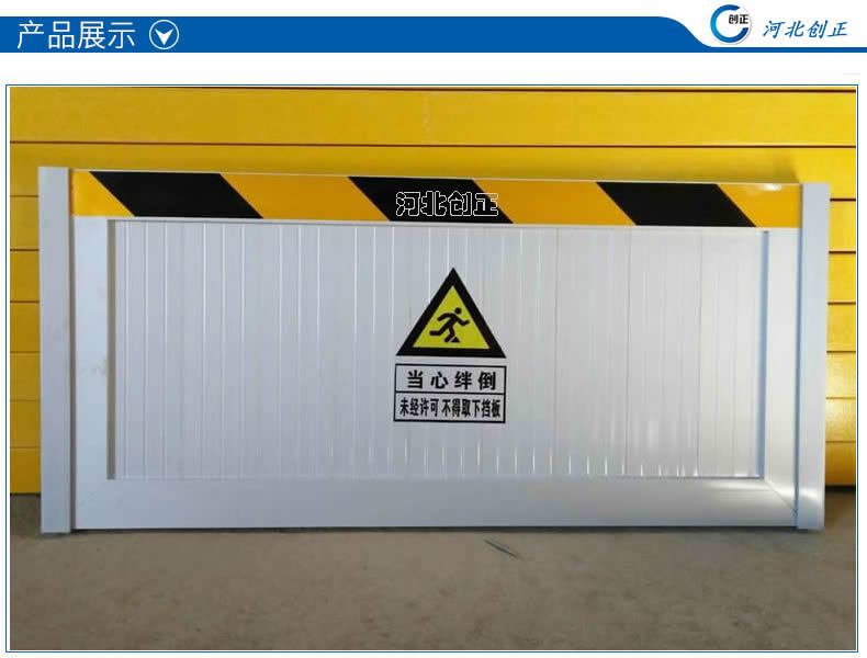 表面經(jīng)過防腐處理。擋板上部貼有黃黑相間的反光條,反射光線,起到警示作用。